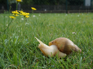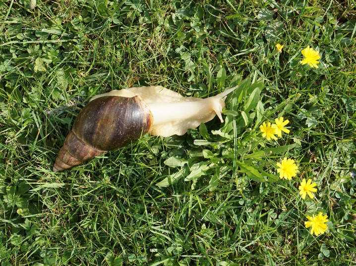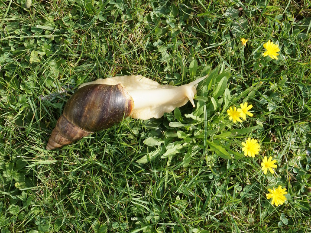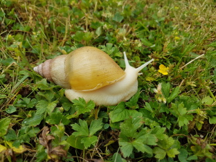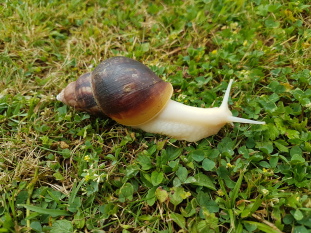 Die Achatschnecke, auch ostafrikanische Riesenschnecke genannt, gehört zur Familie der Landschnecken. Mit einer Gehäuselänge von 12 - 20 cm und einer Körperlänge von bis zu 30 cm ist sie die größte Landschnecke der Welt.